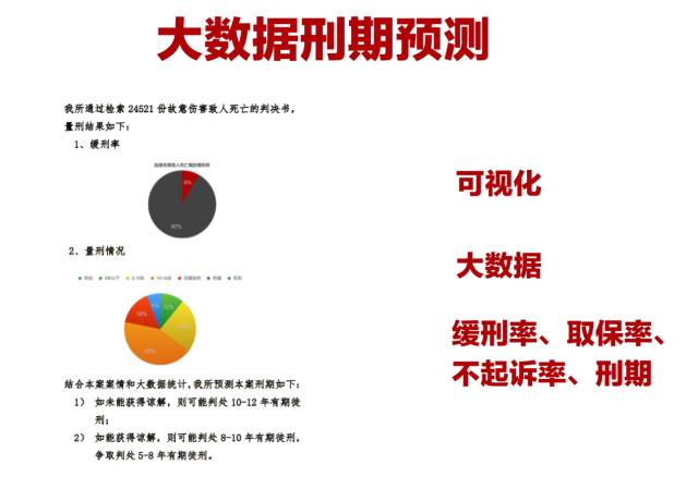 因我们所一直在制作大数据报告,故在此部分,我们将大数据思维植入刑期预期,对缓刑率、不起诉率、取保率、刑期等客户特别关注的维度进行精准预测。