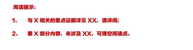 着重讲讲阅读指引的运用,尤其是在多人多起涉案的共同犯罪案中的作用。例如,我们手头正在办理的一个案件,整份报告约为40万字,报告目录就有9页,让客户全文看完,绝对泪奔,但事实上,客户更多只关心结果,并非紧急而迫切地了解论证过程,所以建议制作阅读指引,优先引导客户阅读,改善阅读体验。举个例子: