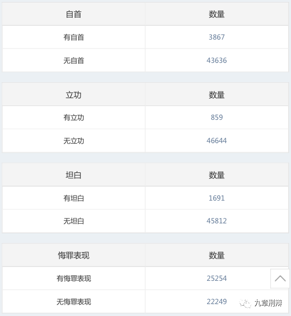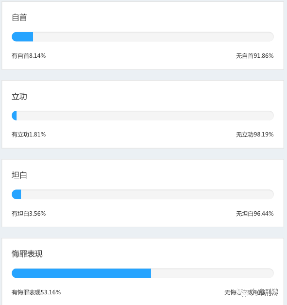 至于“立功”“坦白”“退赃退赔”“被害人谅解”等情节的认定则相对较难,低则1%,最高才3%多点;