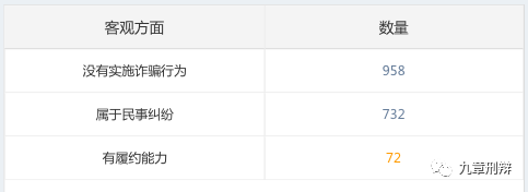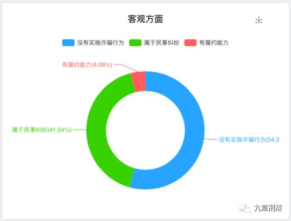 主观方面:缺乏诈骗故意超过三分之一,缺乏非法占有目的接近三分之二,二者显然也属于刑辩律师的常规武器。