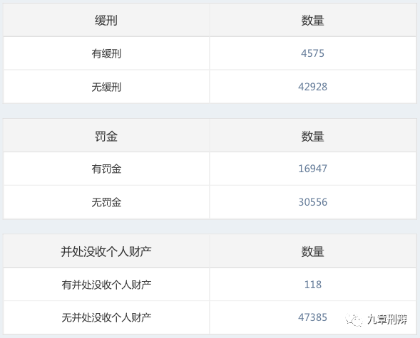 缓刑案件占了9.63%,将近一成的比例,说明在合同诈骗案件中,情节不太严重的,还是可以积极争取缓刑的。