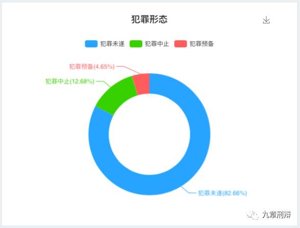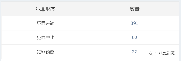 就犯罪形态方面的辩护要点而言,提出“未遂”观点的案例占比很高,82.66%,八成以上,后两种情节,则相对较少,近五万份文书中,提到者不足一百,显然无足轻重。