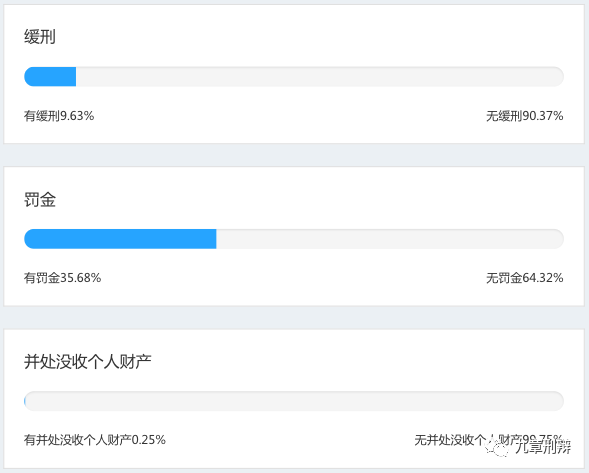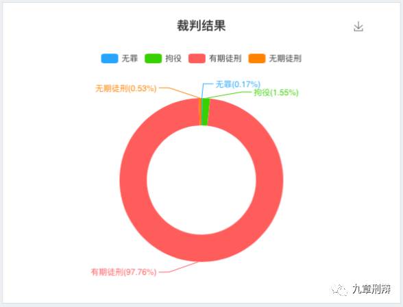 罚金刑有35.68%,超过了三分之一,说明并处或单处罚金刑的案件,还是很大比例的,也是今后辩护律师努力的方向。