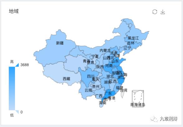 从地图颜色可清晰看出,东南沿海等经济最发达地区,合同诈骗犯罪最为猖獗,而越往西部内地等经济欠发达地区,合同诈骗则相对较少。
